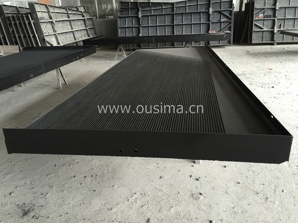6-S摇床玻璃钢具有富矿比高,在改变横向坡度和冲程是仍可保持床面运行平衡,弹簧放置在箱体内,结构紧凑,且能依次得出终精矿和尾矿。
