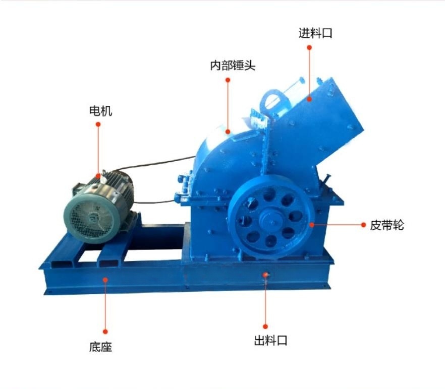 锤式破碎机由转子、锤头、传动轴承、筛板、电机等部件组成。