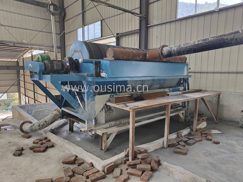 湿式磁选机主要由圆筒、辊筒、刷辊、磁系、槽体、传动部分6部分组成。