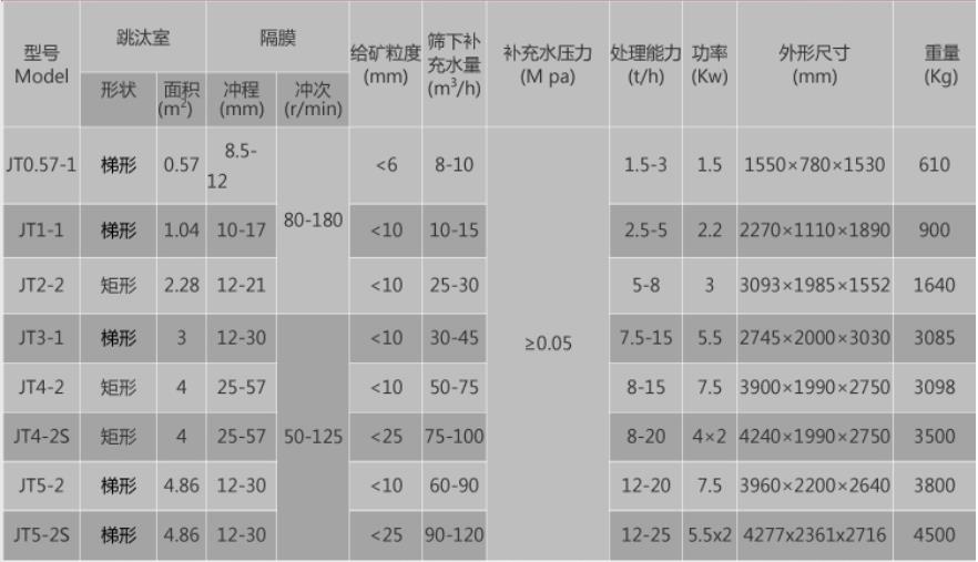 1、跳钛机设备结构紧凑,占地面积小,单位面积处理能力大,选别粒度范围广。